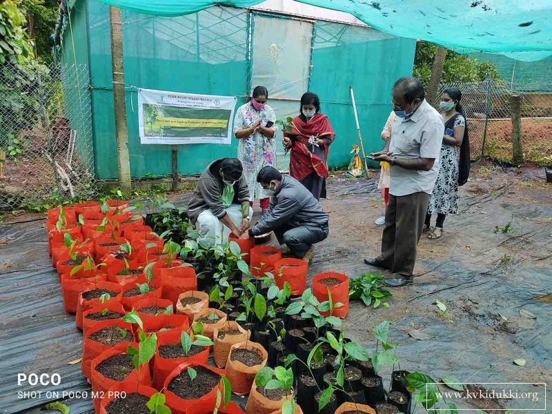 As part of promoting agroforestry and afforestation across the district, ICAR-Krishi Vigyan Kendra (BSS), Idukki has initiated one lakh jackfruit sapling production programme in the KVK premises. Inauguration of the programme was conducted by Sri. Shine V J, Santhanpara Grama Panchayat President on 13.07.2021 at KVK instructional Farm. In the inaugural address, Sri. Shine addressed the importance of growing jackfruit and its value in maintaining the ecological stability and enhancing the human nutritional status. He appreciated the KVK team in coming up with such an innovative initiative for the benefit of farming community. He also pointed out to monitor the growth and development of these saplings and to promote jack tree based cardamom production system in Idukki district. In progress one lakh jackfruit saplings will be produced and will be distributed among the farmers. Dr. R. Marimuthu, Senior Scientist and Head, ICAR-KVK, Idukki, expressed the main objective of this programme on growing jackfruit as an integration in multitier agroforestry systems such as home gardens. He also assured the geotagging of the jack tress in progress.