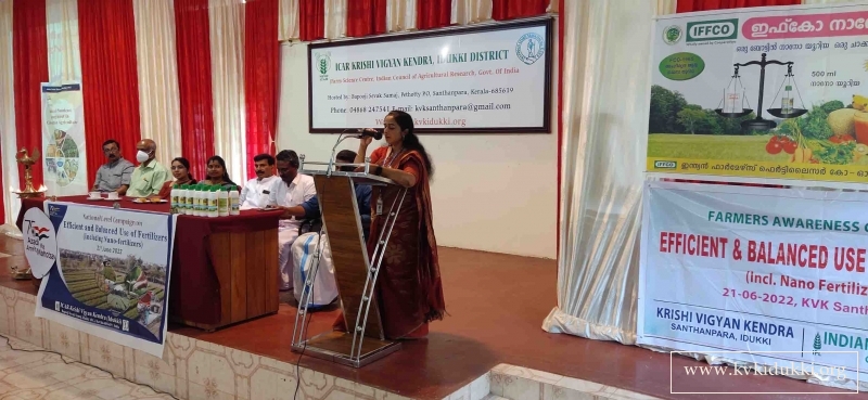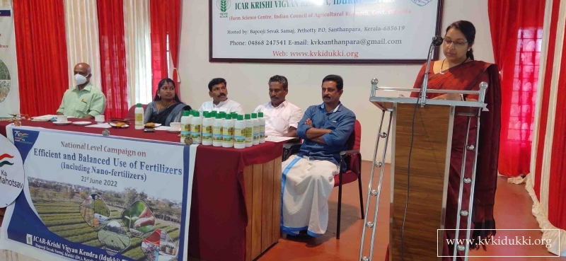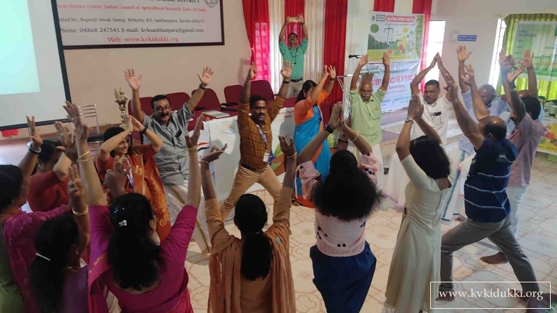 ICAR-Krishi Vigyan Kendra, Idukki organized an Awareness Campaign on “Balanced Use of Fertilizers and celebration of International Yoga day” on 21.06.2022. The main objective of this programme was to impart knowledge on balance use of fertilisers to the stakeholders, especially the farmers. The programme was presided over by Smt. Reena Chacko, Chairperson, Bapooji Sevak Samaj. She highlighted the country’s progress from the traditional fertilizer application to integrated nutrient management and achievement of self-sufficiency in food production. Nedumkandam Block Panchayat Member, Sri. Ajesh, Vice-President, Rajakumary Grama Panchayat formally inaugurated the programme. Smt. Asha Santhosh, Arogya Standing Committee Chairperson delivered the special address and apprised the farmers about the importance of maintaining the soil health and the ways in which healthy soils support plant growth and enhance the crop yield. She also deliberated the importance of Yoga tin ensuring a healthy soul and body. Sri. T. J. Siju, Nedumkandam Block Panchayat Member, Sri. N. M. Sreekumar, Ward member, Chinnakanal Grama panchayat, Sri S. R. Raju, Ward member, Rajakkad Grama panchayat, Sri. Rajesh, IFFCO Representative and Sri. Anu, IPL Representative felicitated the programme. Then, the expert of the programme Ms. Manju Jincy Varghese, Subject Matter Specialist (Soil Science) spoke on wide range of the subjects covering all the essential aspects of ‘Balanced Use of Fertilisers’. She stressed on avoiding indiscriminate use of fertilizers and optimum use of Phosphorus and Potassium fertilizers, as misuse of the same leads to higher input cost followed by import burden and also leads to soil pollution. She pointed on the role and importance of micronutrients and 4R’s viz., Right source, right time, right place, right quantity of fertilisers need to be used to ensure healthy soil, environment and plant. A total of 156 farmers and 9 officials attended the training programme. International Yoga day celebrated at ICAR-KVK, Idukki on 21/06/2022. The technical session on importance of Yoga was handled by Ms. Preethu K. Paul, Subject Matter Specialist (Agricultural Extension), KVK-Idukki. Participants practiced yoga during the session. The theme of this year’s Yoga Day celebration is “Yoga for Humanity”.