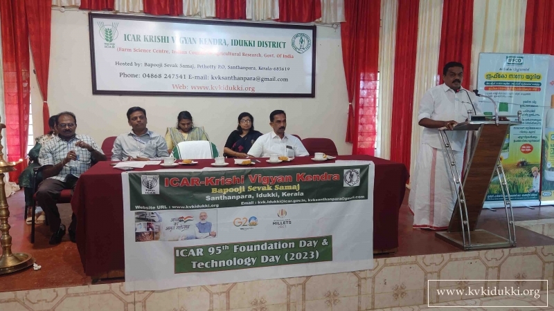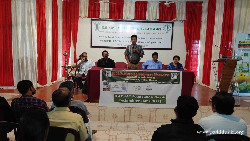 ICAR 95th Foundation Day & Technology Day (2023) was celebrated at ICAR-Krishi Vigyan Kendra, BSS, Idukki from 16/07/2023 to 18/07/2023 (Three days). During the programme, training sessions were arranged to farmers with the topics: – Integrated Pest Management & Integrated Nutrient Management in Small cardamom cultivation. The training session were handled by Mr. Sudhakar Soundarajan, SMS (Plant Protection) & Ms. Manju Jincy Varghese, SMS (Soil Science). In each day, more than 100 farmers participated in the training programme.