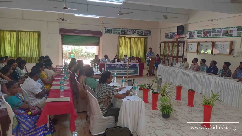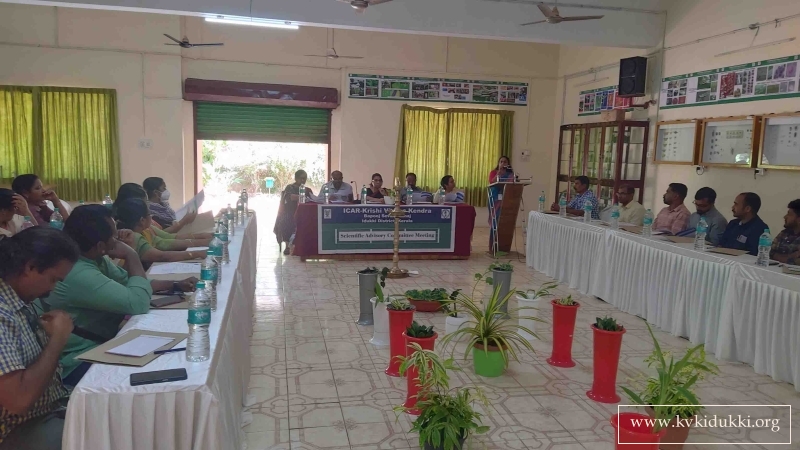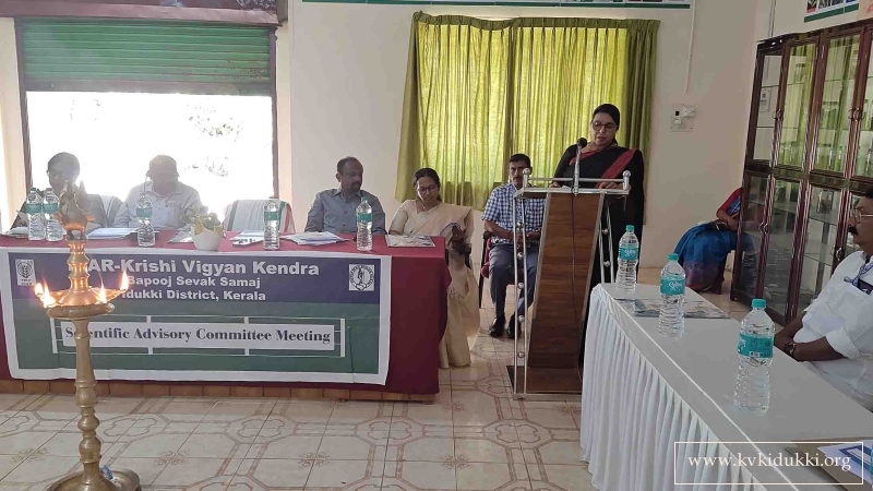 17th Scientific Advisory Committee (SAC) Meeting of ICAR- Krishi Vigyan Kendra, BSS, Idukki was held on 12th March, 2024 at KVK, Seminar Hall, Santhanpara. The meeting was presided over by Ms. Reena Chacko, Chairperson, Bapooji Sevak Samaj. Dr. B. T. Rayudu, Nodal Officer, ATARI inaugurated the programme and gave critical remarks. Action Taken Report on the recommendations of 16th SAC and salient achievements as well as progress of KVK activities were presented by Dr. Marimuthu, Senior Scientist and Head, KVK, Idukki. Dr. Jayalakshmi, Programme Coordinator, Kottayam attended on behalf of DE, KAU and provided her valuable suggestions. Dr. Radhakrishnan, Senior Scientist and Head, KVK, Calicut offered special remarks. Scientists & officials from ICRI, Spices Board, Coffee Board, KVIC, DIC, PAO, ATMA, DAIRY department, Animal Husbandry department, Akashavani, Kudumbasree, VFPCK, Fisheries department and Progressive farmers participated in the meeting. During the interactive session the officials highlighted different problems and suggested thrust areas for the formulation of action plan 2024-25.